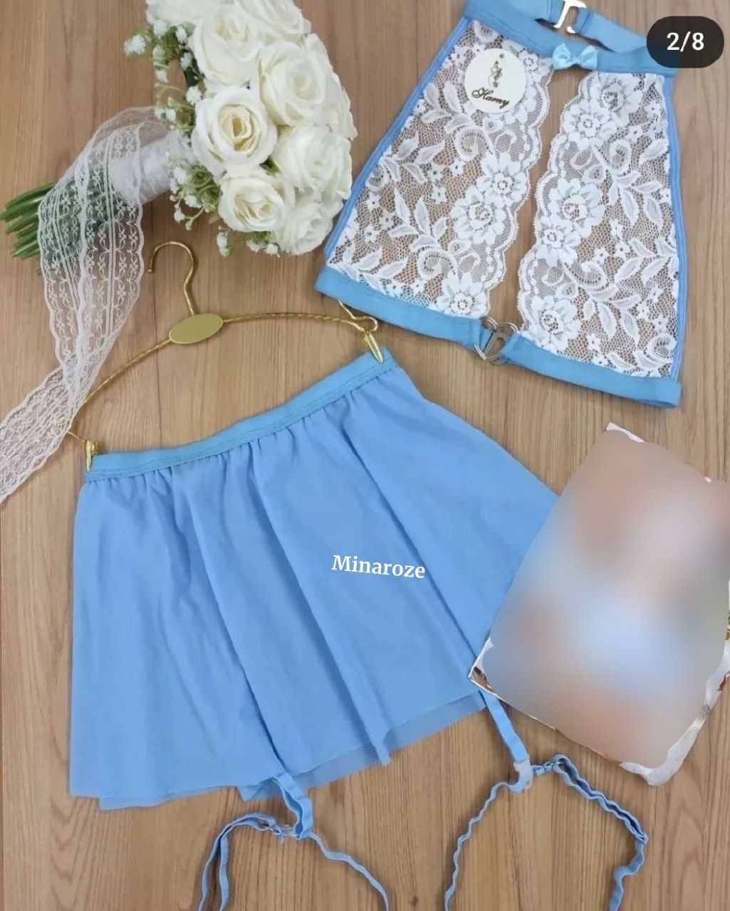 ست لباس زیر زنانه فانتزی 2 تیکه پارچه یاردی اروپایی و گیپور کد 9005