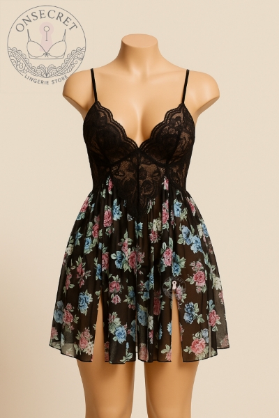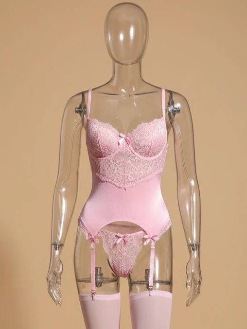 ست لباس خواب و بادی زنانه فانتزی فنردار همره جوراب کد 8059