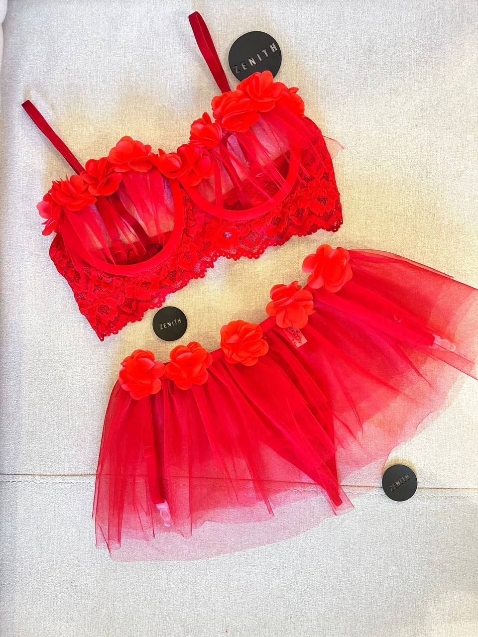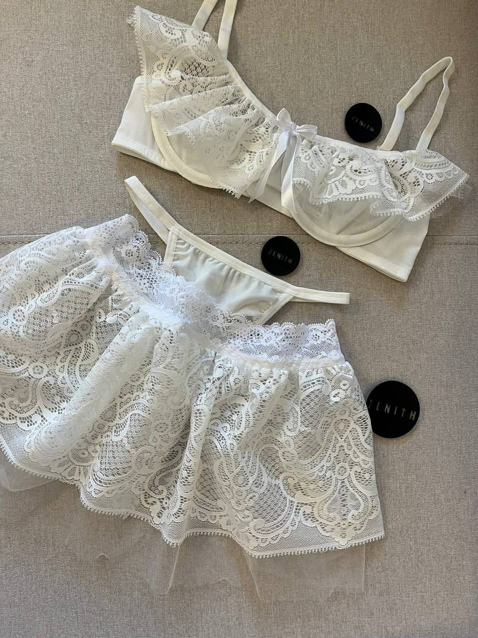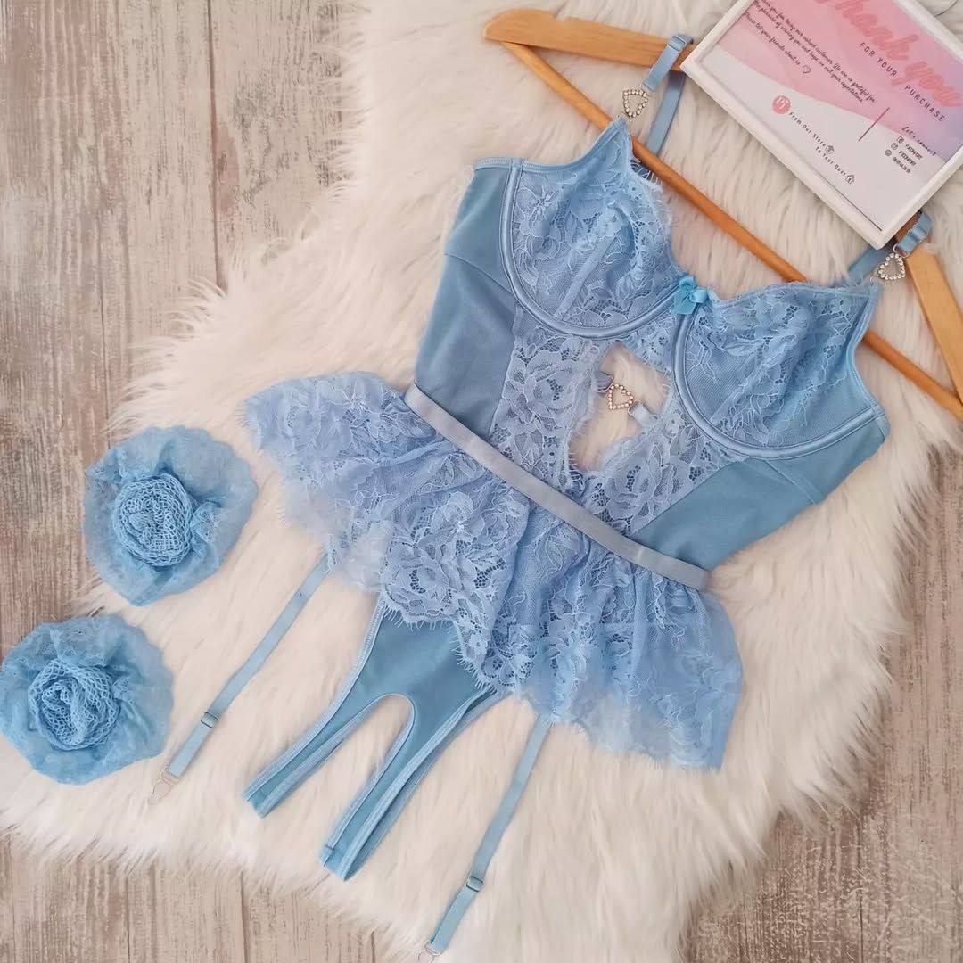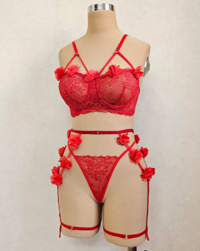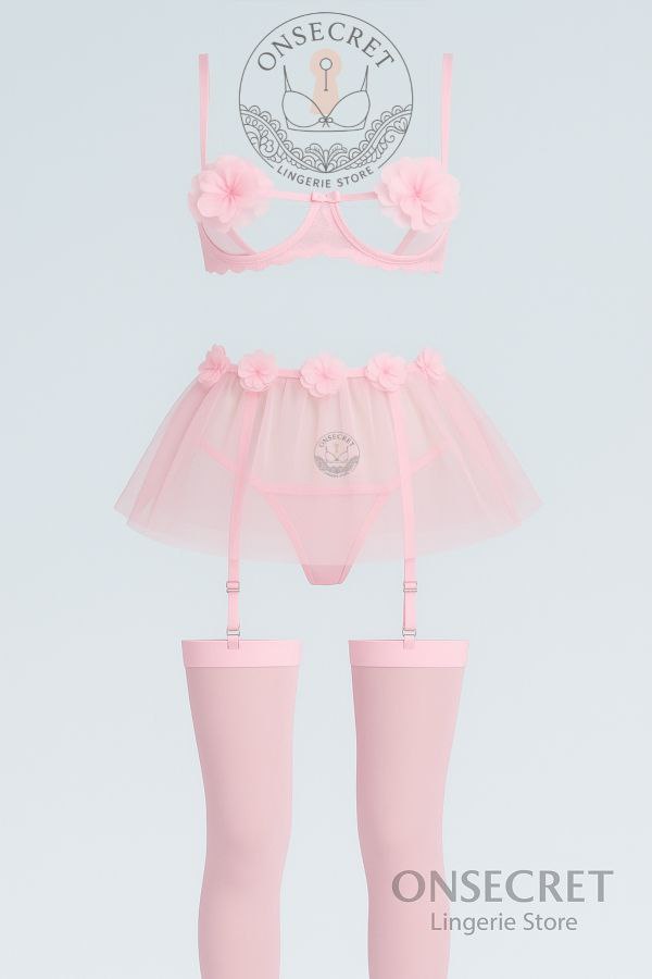 ست لباس زیر فانتزی زنانه ۳ تکه مدل فنردار شکوفه ای از جنس گیپور با کیفیت عالی کد 5180