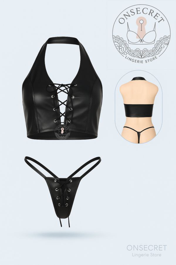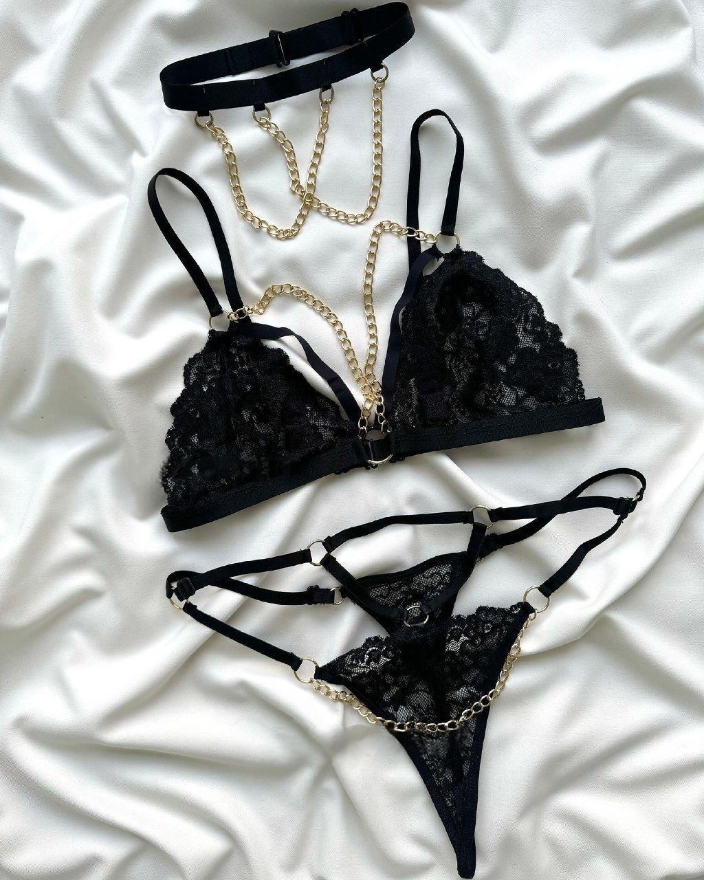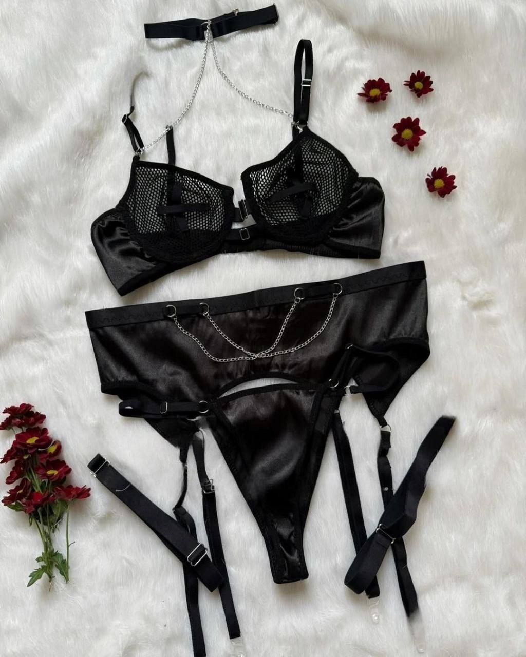ست لباس زیر زنانه سهتکه فانتزی زنجیردار کد ۹۰۲۵