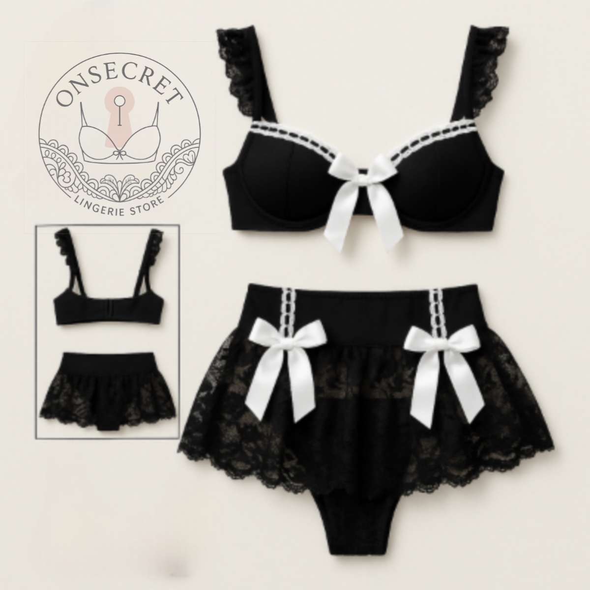 ست لباس زیر زنانه فانتزی ۳ تکه فنردار دانتل کد 1056