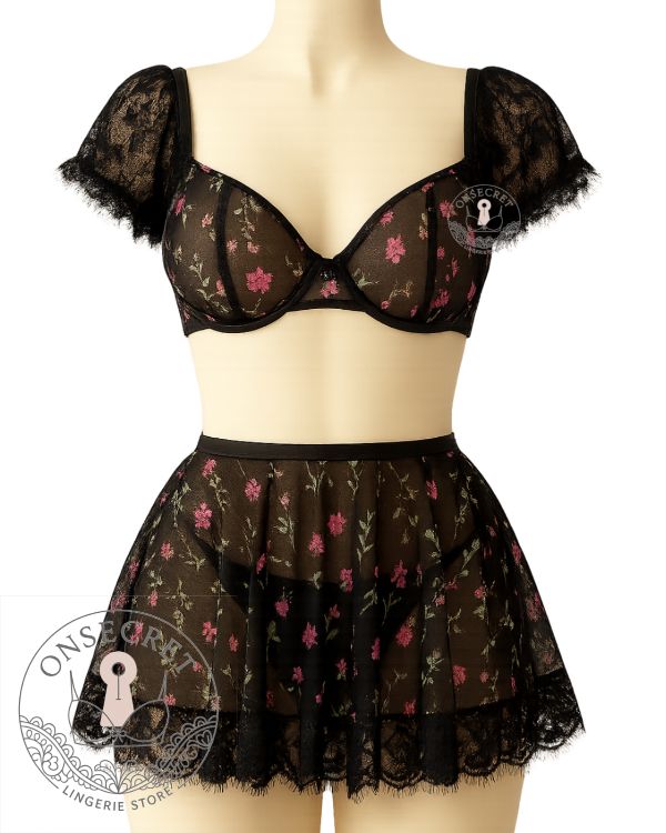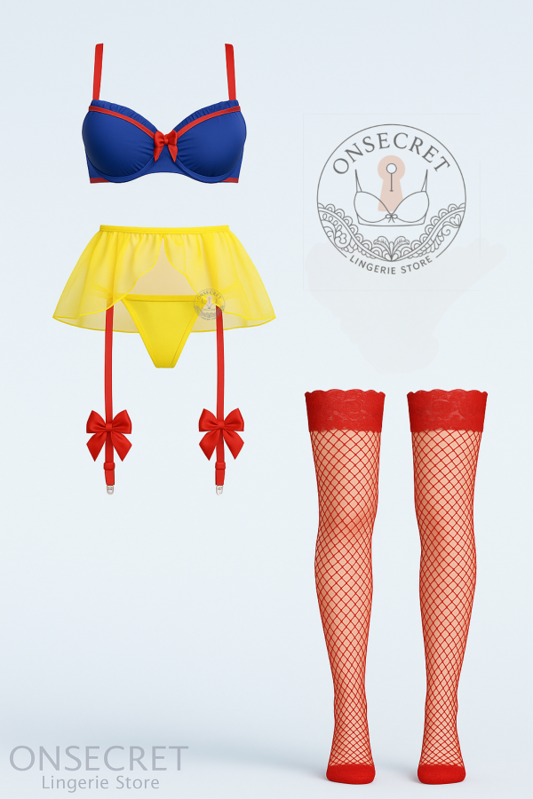 ست لباس زیر زنانه فانتزی فنردار بهمراه جوراب کد M704