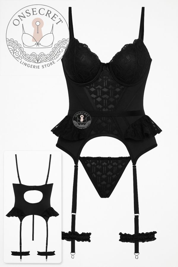 ست لباس زیر فانتزی فنردار نگیندار کد M350