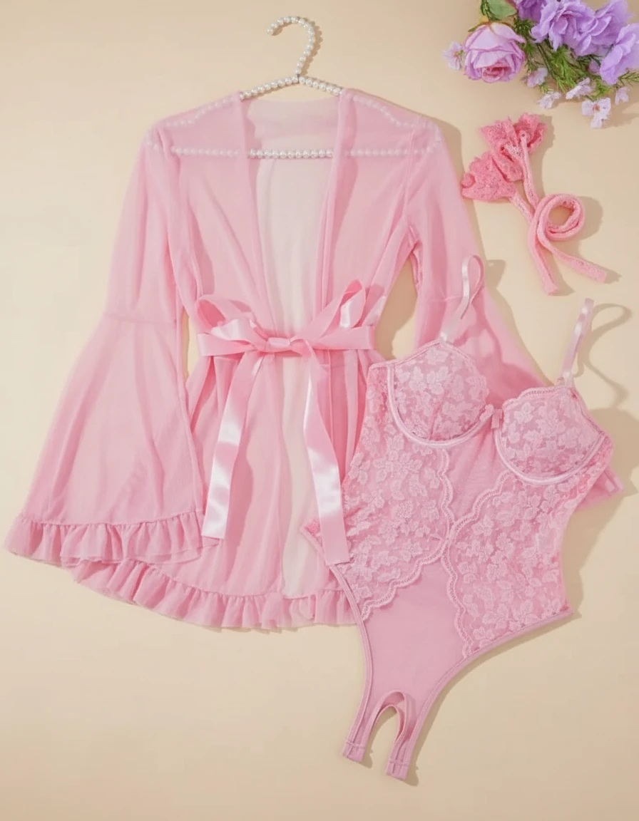 ست لباس خواب و بادی زنانه فانتزی فنردار همره جوراب کد 8059
