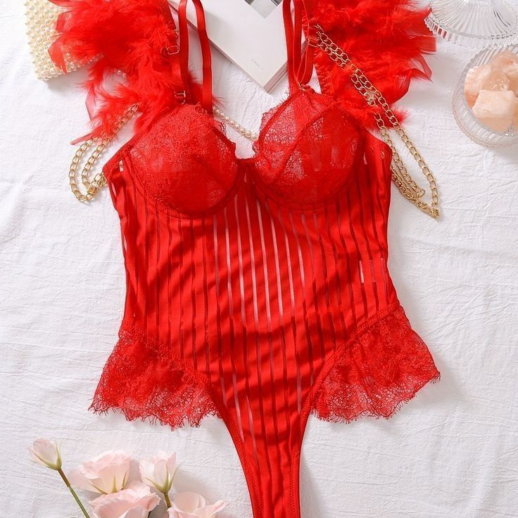 بادی فانتزی زنانه پر و زنجیردار، فاق قزندار کد 1044 / M343