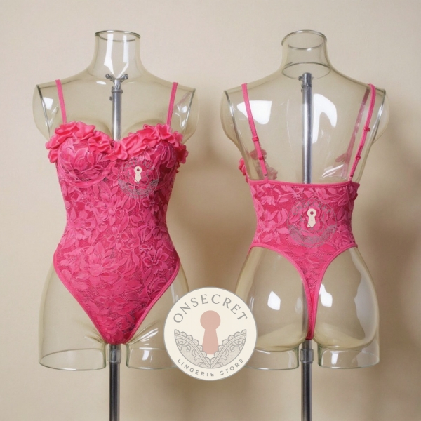 بادی فانتزی زنانه از جنس گیپور مدل شکوفه ای فنردار فاق قزن دار کد 7046