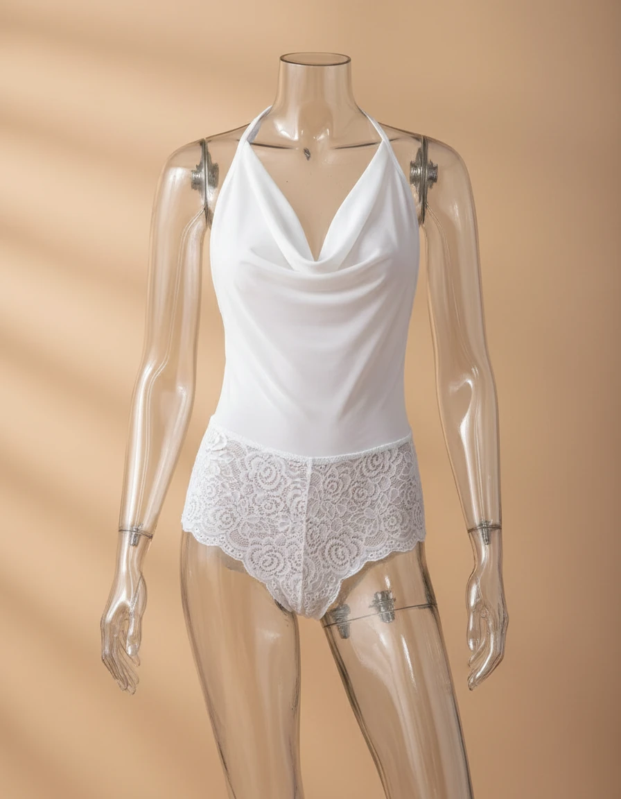 بادی فانتزی زنانه چرم و گیپور فاق قزندار کد 1616