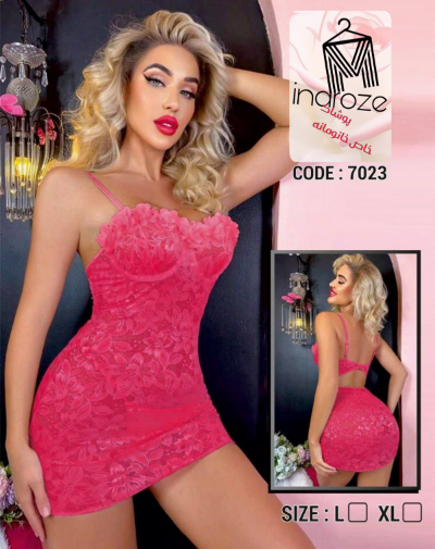 لباس خواب زنانه مدل شکوفه ای فنردار همراه شورت فانتزی گیپور تمام کش کیفیت عالی کد 7023