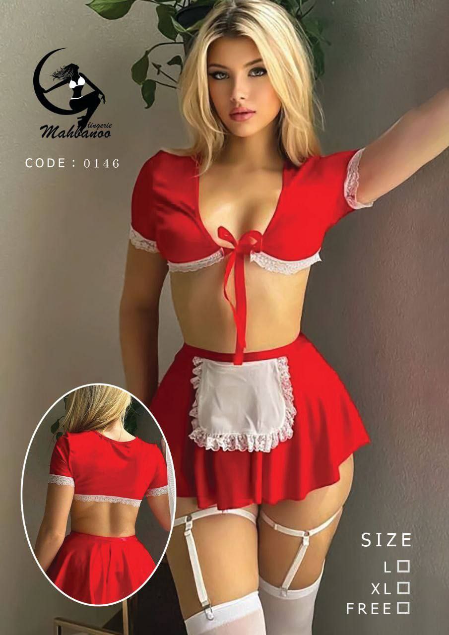 این ست کاستوم خدمتکاری جذابمون با کد 0146 مناسب فری سایز از ۳۸ تا ۴۴ بوده شامل نیمتنه گره ای، دامن پیشبند دار، گارتر بند جورابی و کیفیت و تنخور و دوخت عالی میباشد. برای دیدن عکس تنخور اینجا کلیک کنید