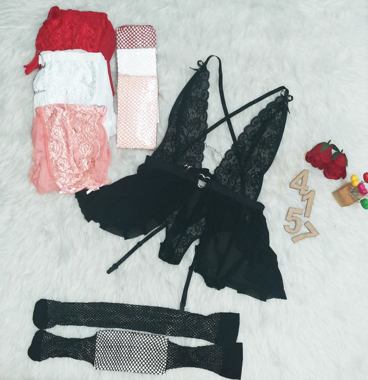 این بادی فانتزی دامنی همراه جوراب با کد 4157 از جنس دانتل و حریر کشی در رنگبندی سفید، قرمز، صورتی(گلبهی)، مشکی با کیفیت عالی بوده و مناسب سایزبندی (۴۲-۴۴)L(۳۸-۴۰) _ Xl میباشد. برای دیدن عکس تنخور رنگ صورتی اینجا و قرمز برای دیدن عکس تنخور اینجا کلیک کنید کلیک کنید.