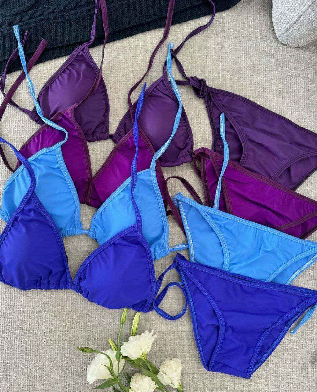 این بیکینی زنانه جذاب مدل گره ای در رنگهای متنوع از جنس غواصی لطیف مناسب فری سایز از ۳۶ تا ۴۴ میباشد.