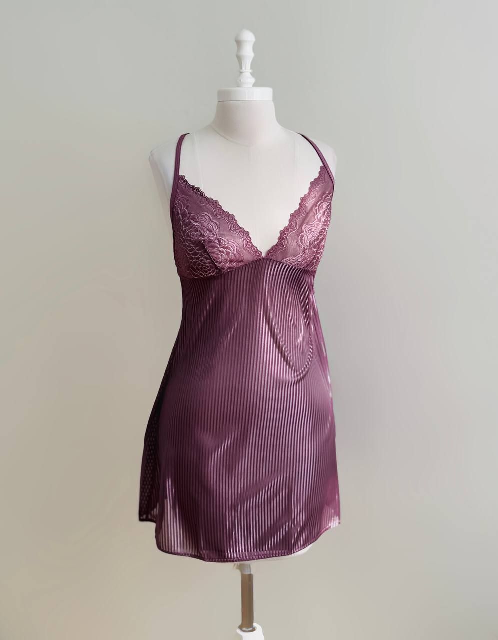 مدل لباس خواب: قسمت سینه گیپور، بند سرشانه از پشت ضربدری، کوتاه ۱۵ سانت زیر باسن