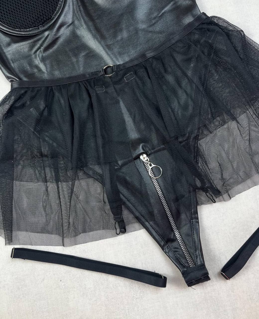 این ست بادی و بند جوراب زنانه فانتزی فوقالعاده خاص و جذاب با کد 1046 از جنس پارچه طرح چرم و تور زنبوری ریز بافت + تور ساده مدل سینه فنر دار و فاق زیپی قزندار منا سب سایزبندی: (۴۲-۴۴)L(۳۸-۴۰)-XL میباشد.