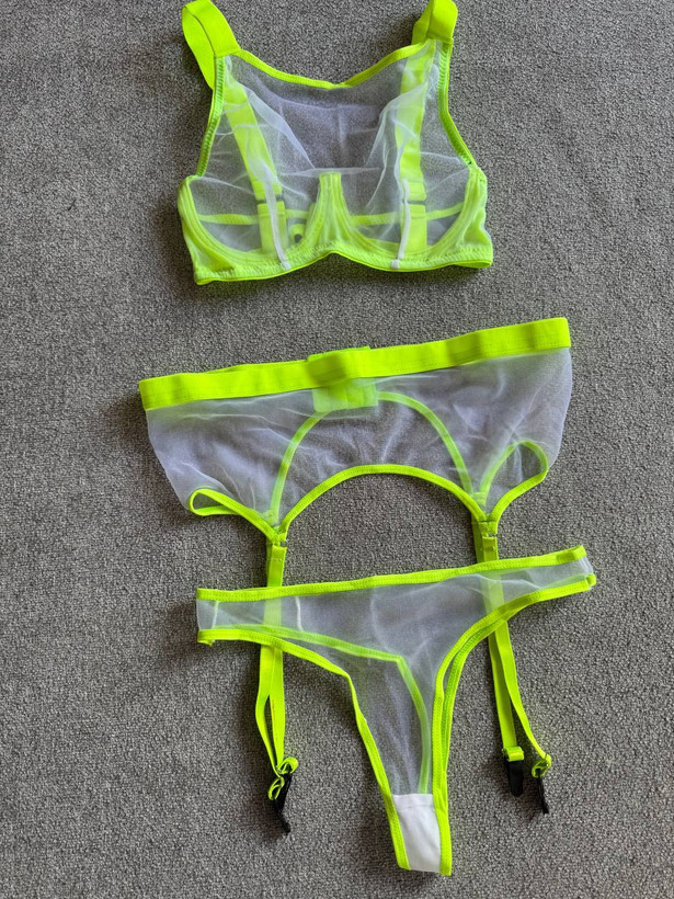 این ست لباس زیر فانتزی زنانه ۵ تکه فوقالعاده خاص و شیک با کد 4185 شامل: سوتین فنردار با طراحی خاص، شورت فانتزی بکلس، بند جوراب کمربندی، جوراب ساق بلند همرنگ کش های کار و از جنس تور شیشه ای در رنگبندی مشکی، قرمز، آبی کاربنی و سبز فسفری، مناسب سایزبندی (۸۰-۸۵)L(۷۰-۷۵) ، XL میباشد.