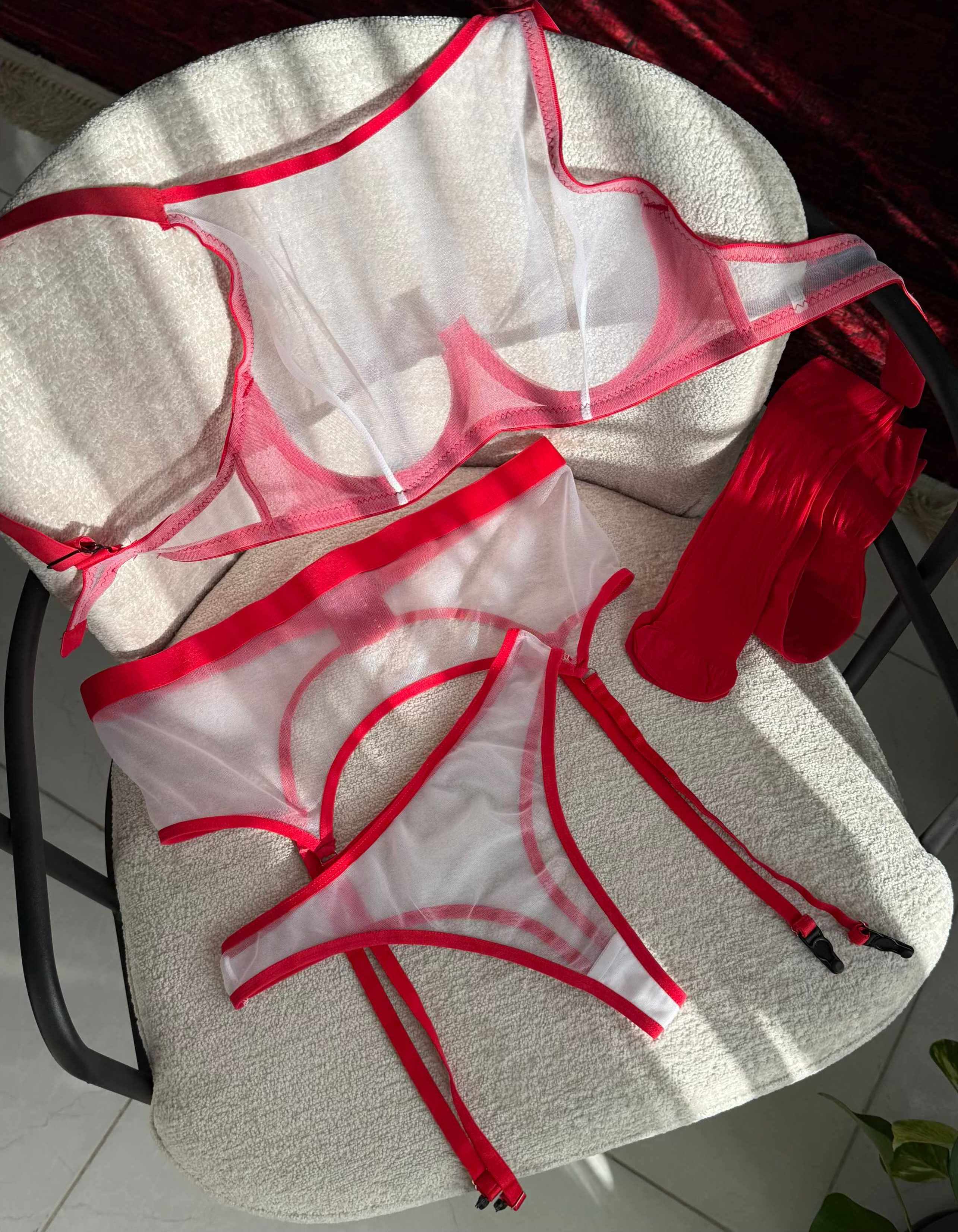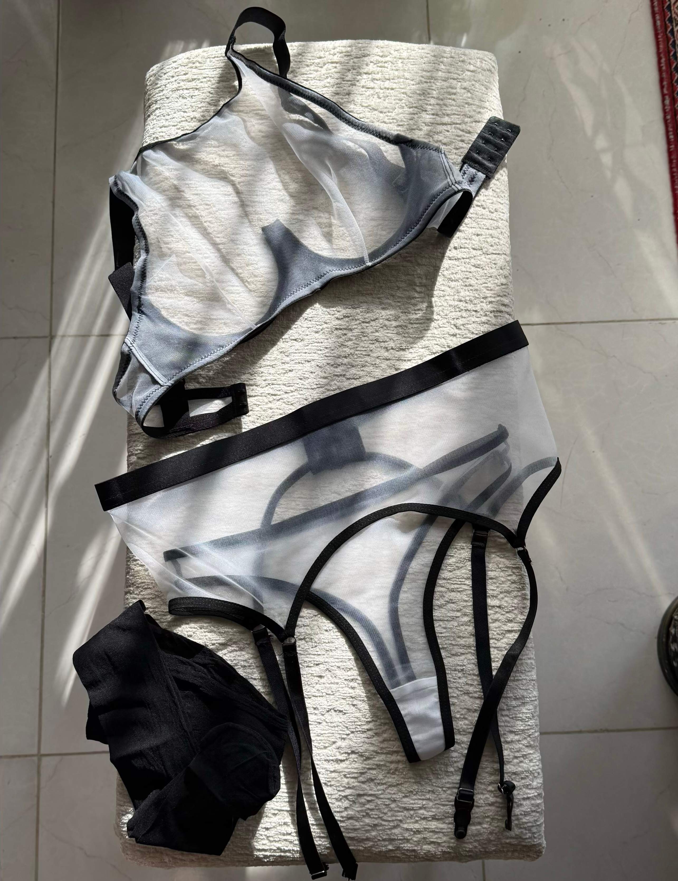 ست کامل: سوتین، شورت، بند جوراب، جوراب