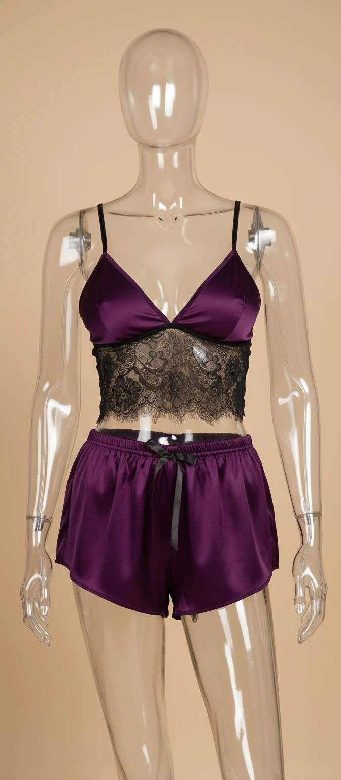 این ست کراپ شورتک زنانه فانتزی و زیبا با کد 9924 مناسب سایزبندی (۴۰-۴۲)L(۳۶-۳۸) . XL از جنس پارچه ساتن ابریشم و دانتل اعلا با کیفیت دوخت و پارچه عالی و رنگبندی جذاب میباشد.