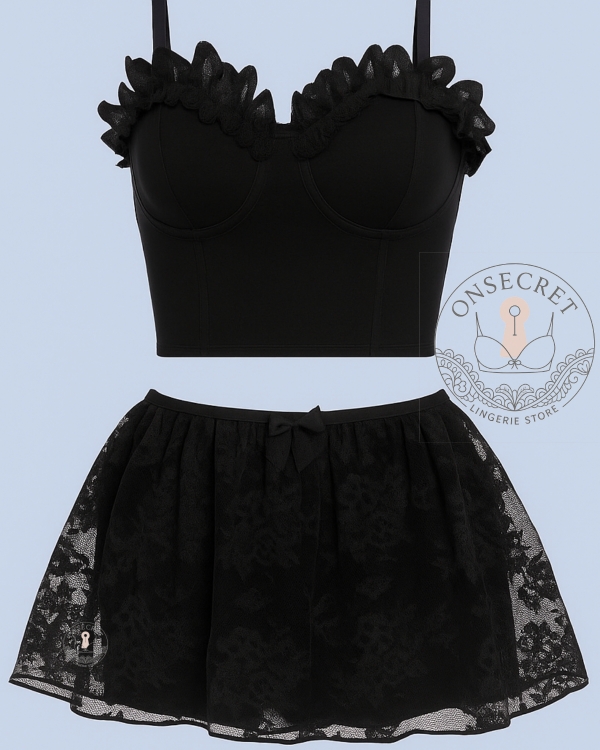 ست نیمتنه و دامن زنانه فانتزی فنردار جورابدار از جنس دانتل و تور کد 2084