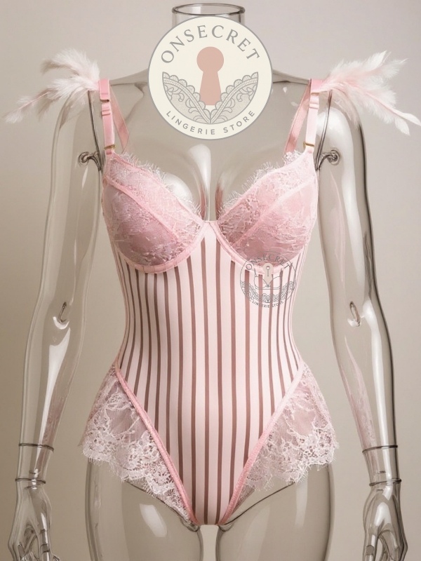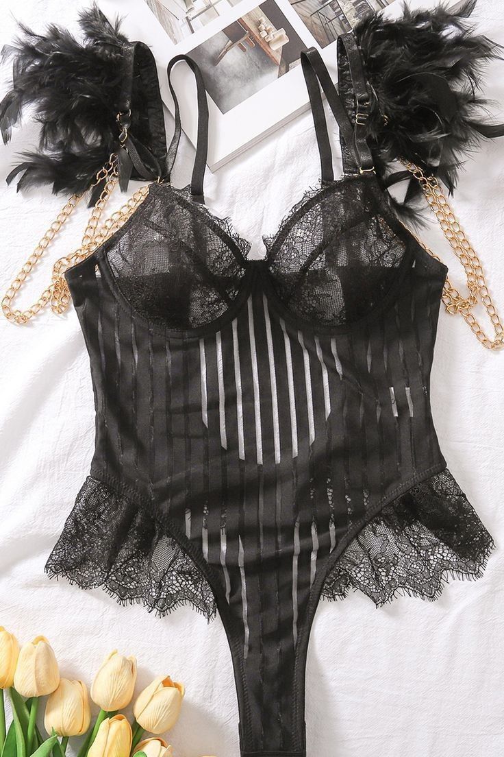بادی فانتزی زنانه پر و زنجیردار، فاق قزندار کد 1044 / M343