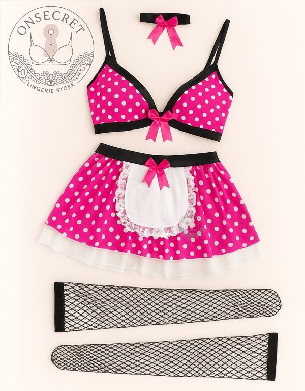 این ست کاستوم فانتزی خدمتکاری شامل سه تکه: سوتین، دامن و جوراب تور، با طراحی خاص و پارچه نرم و سبک تهیه شده است. ترکیب رنگ پارچه خال دار همراه با روبانها و پیشبند سفید گیپوردوزی شده، جلوهای چشمنواز و جذاب به این مجموعه میدهد. مدل دامن کوتاه با لایهدوزی تور و پیشبند جلوی کلاسیک، در کنار سوتین خوشفرم که به زیبایی روی بدن قرار میگیرد، مناسب فری سایز از ۳۸ تا ۴۲ طراحی شده است. دوخت تمیز، پارچه راحت و حس لطافت این ست، استفاده از آن را برای مناسبتهای ویژه و یا ایجاد تنوع در استایل شخصی، ایدهآل ساخته است. این ست با جوراب تور کلاسیک تکمیل میشود تا جلوهای متفاوت و شیک ایجاد کند.