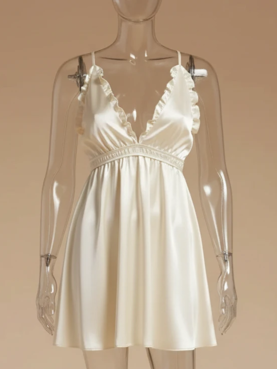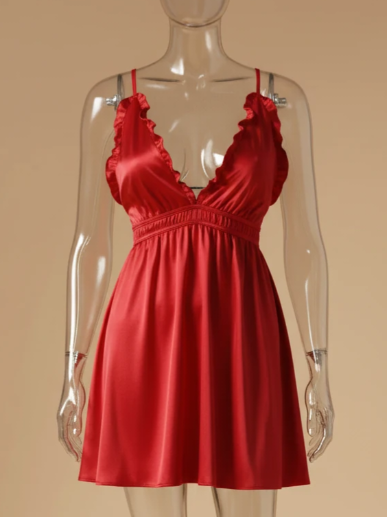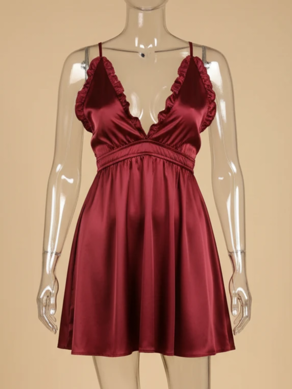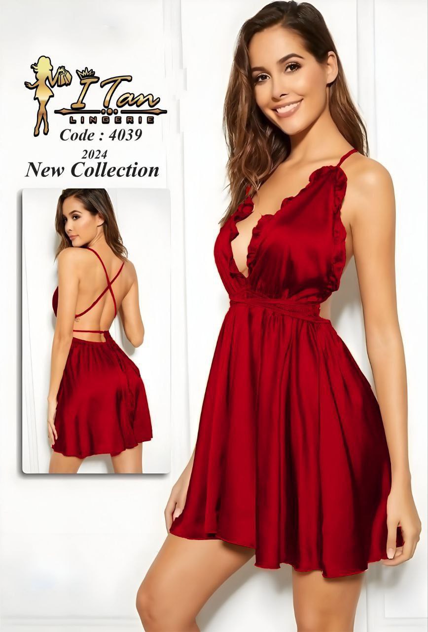 لباس خواب زنانه فانتزی ساتن بند گره ای بلند کد 4039