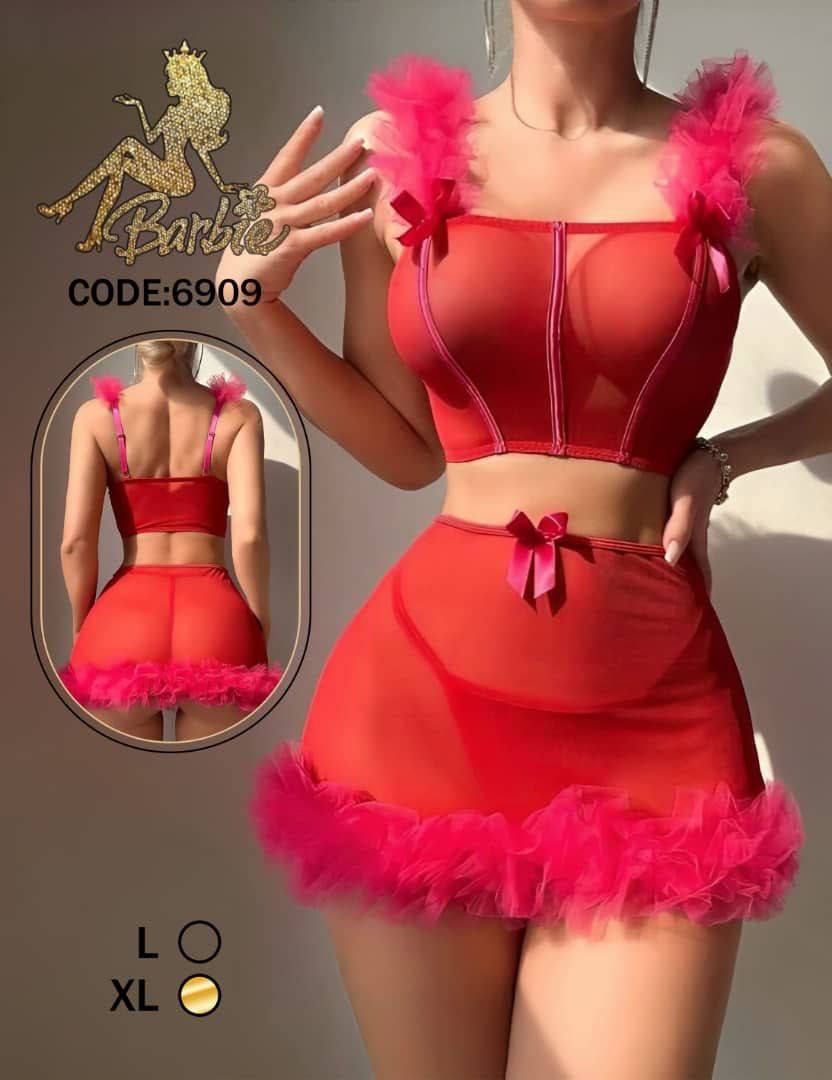 با این ست قرمز پرشور و خاص، استایل شبانهای متفاوت و خیرهکننده داشته باشید. نیمتنه جذاب با طراحی شفاف در بخش سینه، دوخت ظریف و بندهای تزیینشده با تور و پاپیونهای ساتن صورتی، حس فانتزی و دخترانه را به اوج میرساند. دامن کوتاه حریر با لبه پرچین صورتی، حالتی رمانتیک و پرانرژی به ظاهر اضافه کرده و انتخابی ایدهآل برای لحظات خاص است. برای دیدن عکس تنخور اینجا کلیک کنید