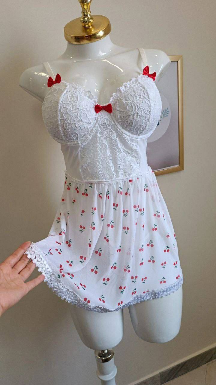 این لباس خواب سفید با طراحی فانتزی و طرح گیلاس، تلفیقی از لطافت و جذابیت را ارائه میدهد. برای دیدن عکس تنخور اینجا کلیک کنید