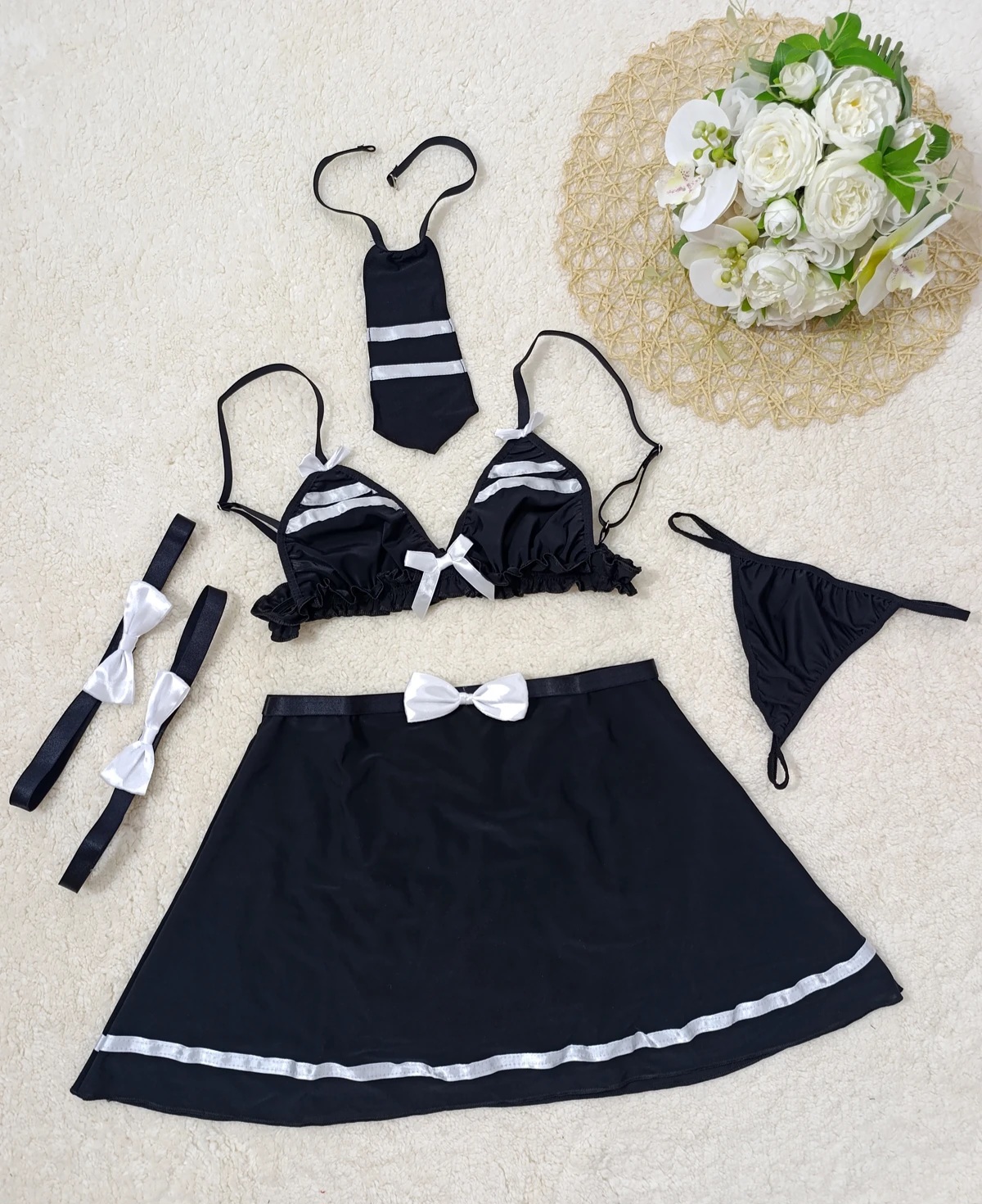 ست کامل: سوتین، دامن، کراوات، بند دور پا