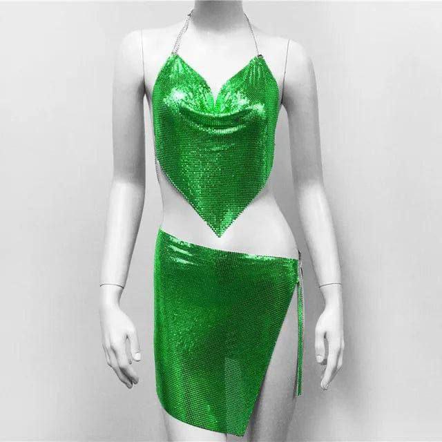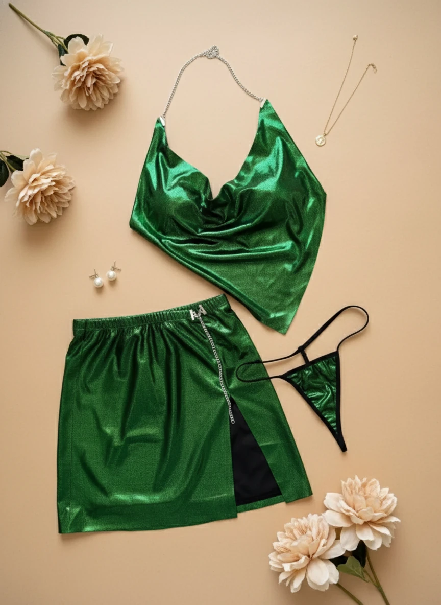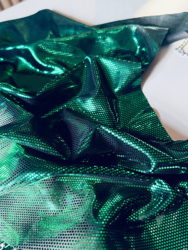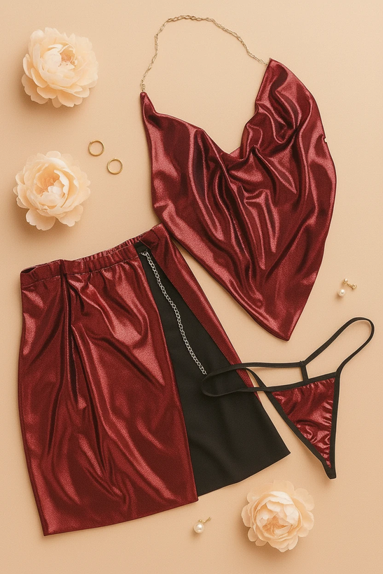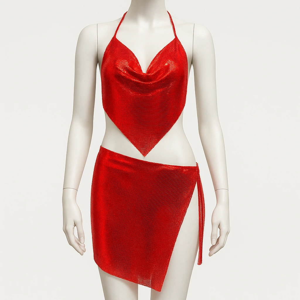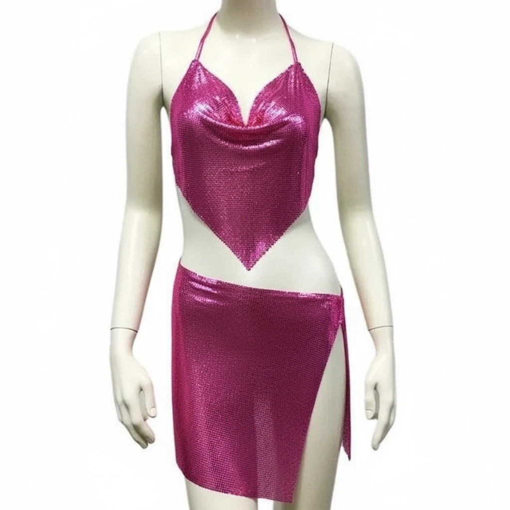 این ست تاپ و دامن دیسکویی براق با طراحی فانتزی و جذاب، جلوهای خیرهکننده برای مهمانیها و فضاهای خاص ایجاد میکند. پارچه دیسکویی، سبک و انعطافپذیر بوده و به خوبی بر فرم بدن مینشیند. تاپ دکلته با آویز آزاد و دامن کوتاه نامتقارن، ظاهری مدرن و متفاوت به استایل میدهد. برای دیدن عکس تنخور اینجا کلیک کنید