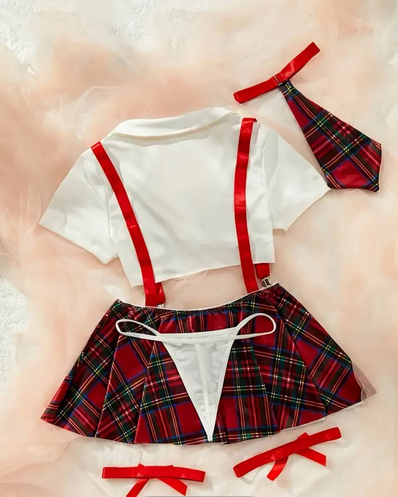 ست کامل: نیمتنه، کراوات، دامن، شورت و بند دور پا