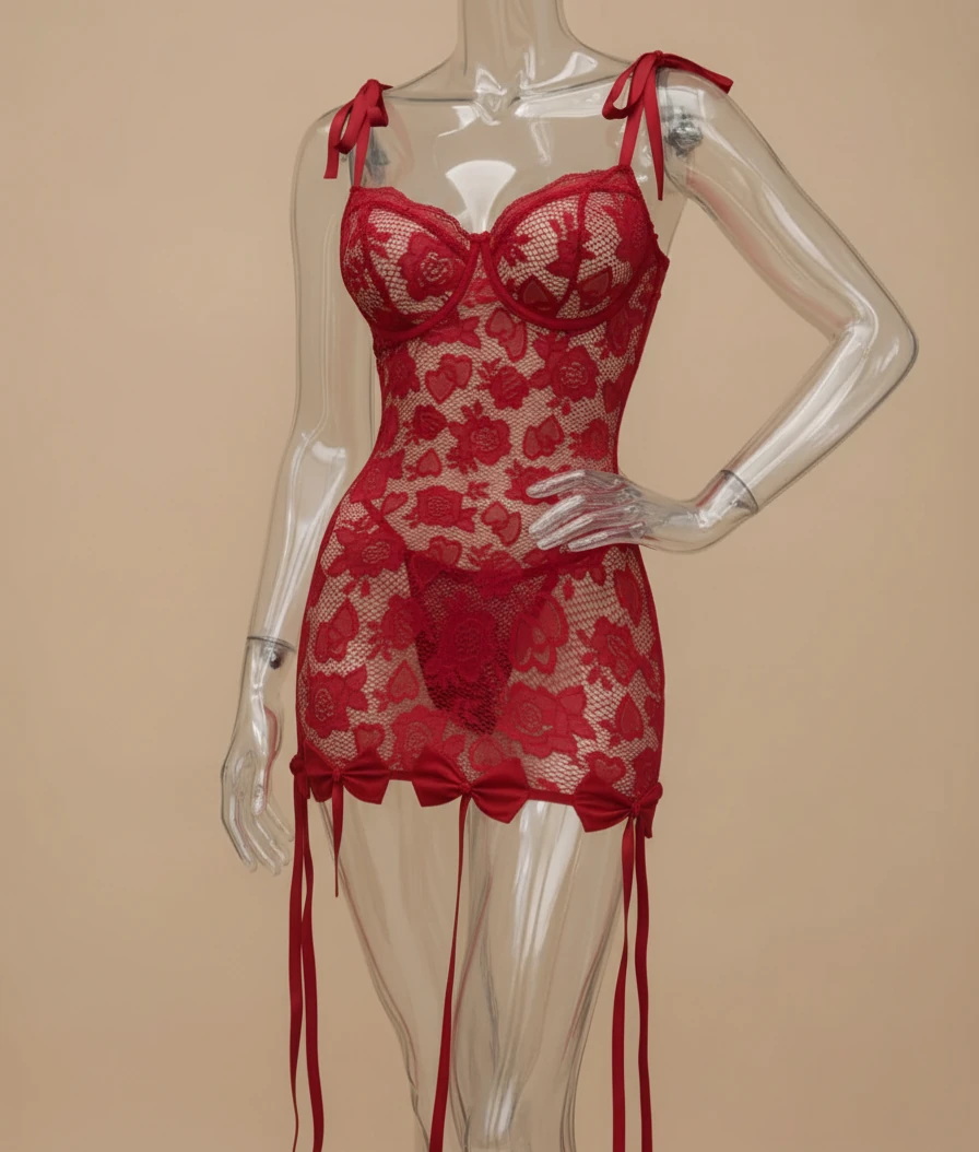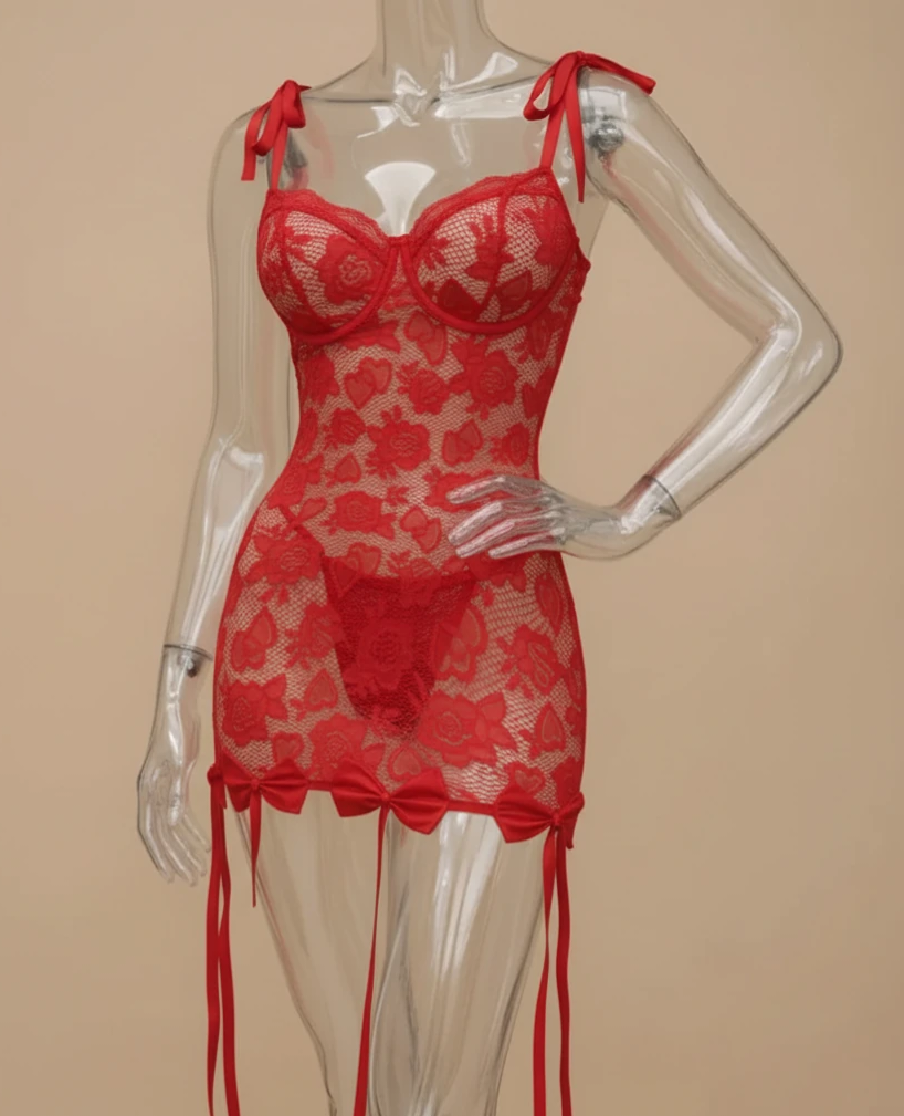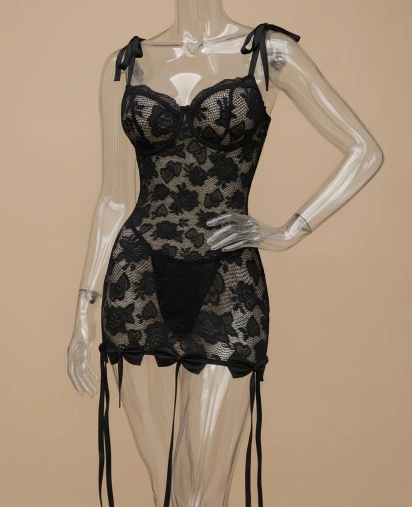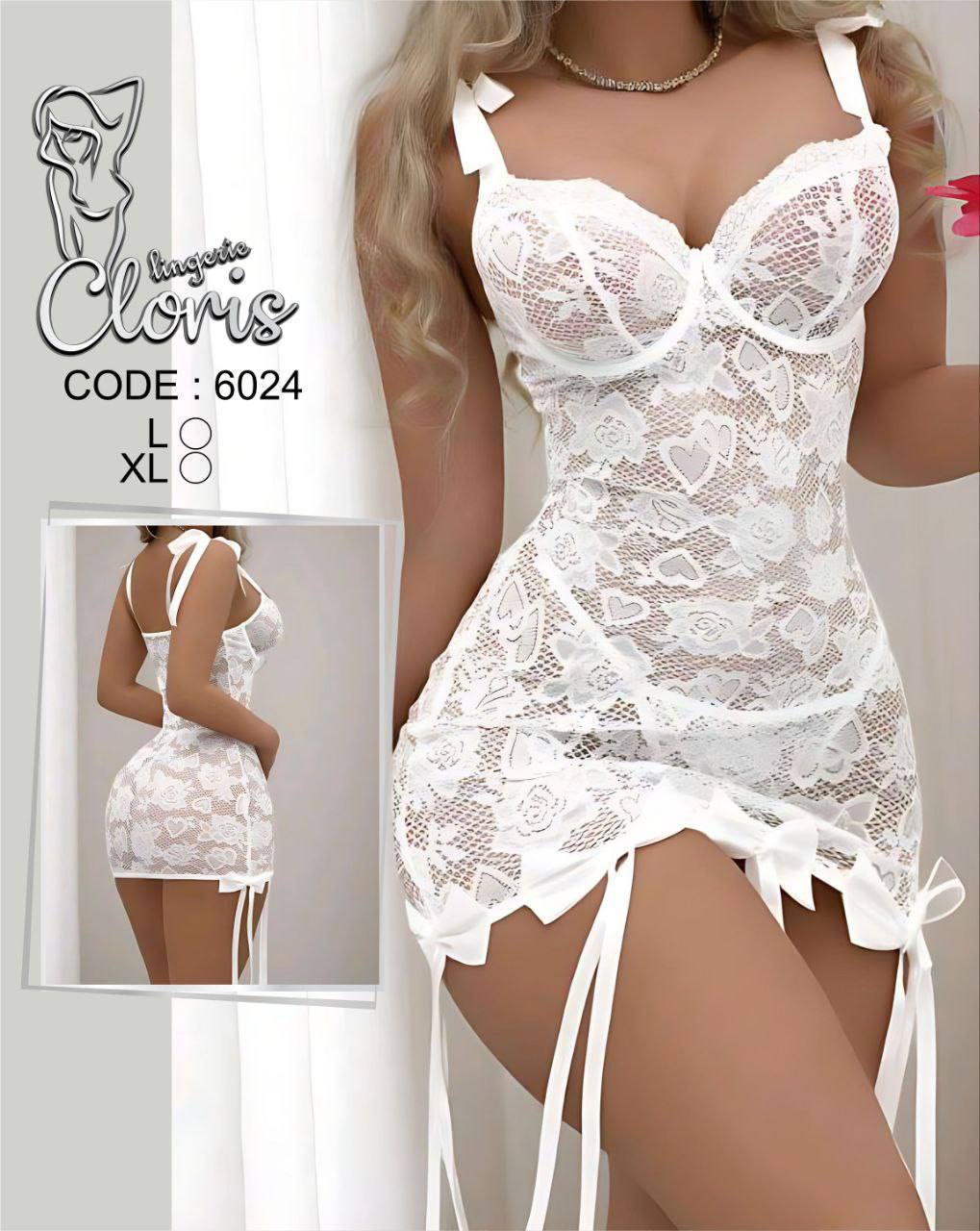 لباس خواب زنانه فانتزی جنس دانتل کشی ظریف فنردار کد 6024