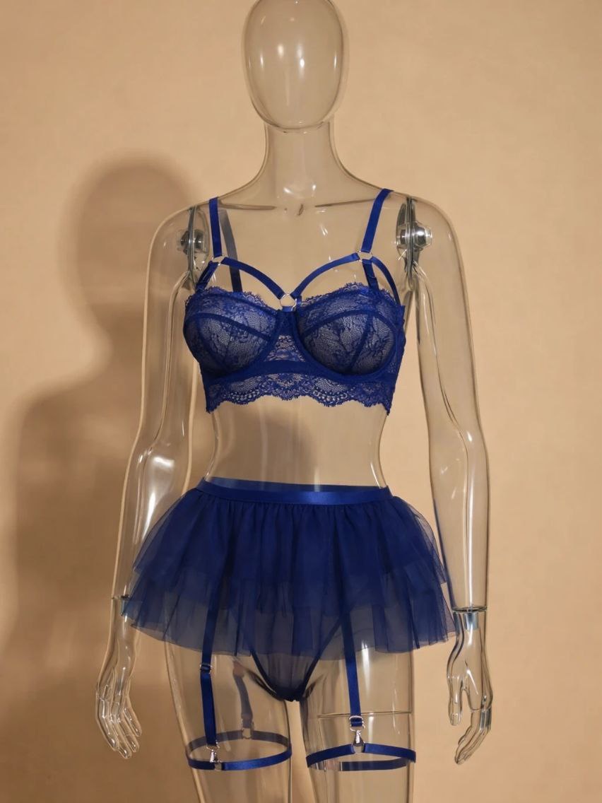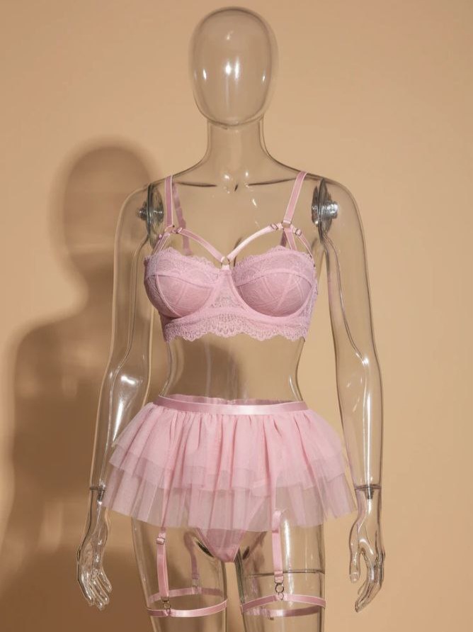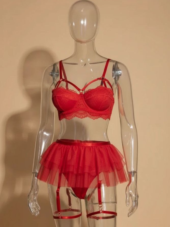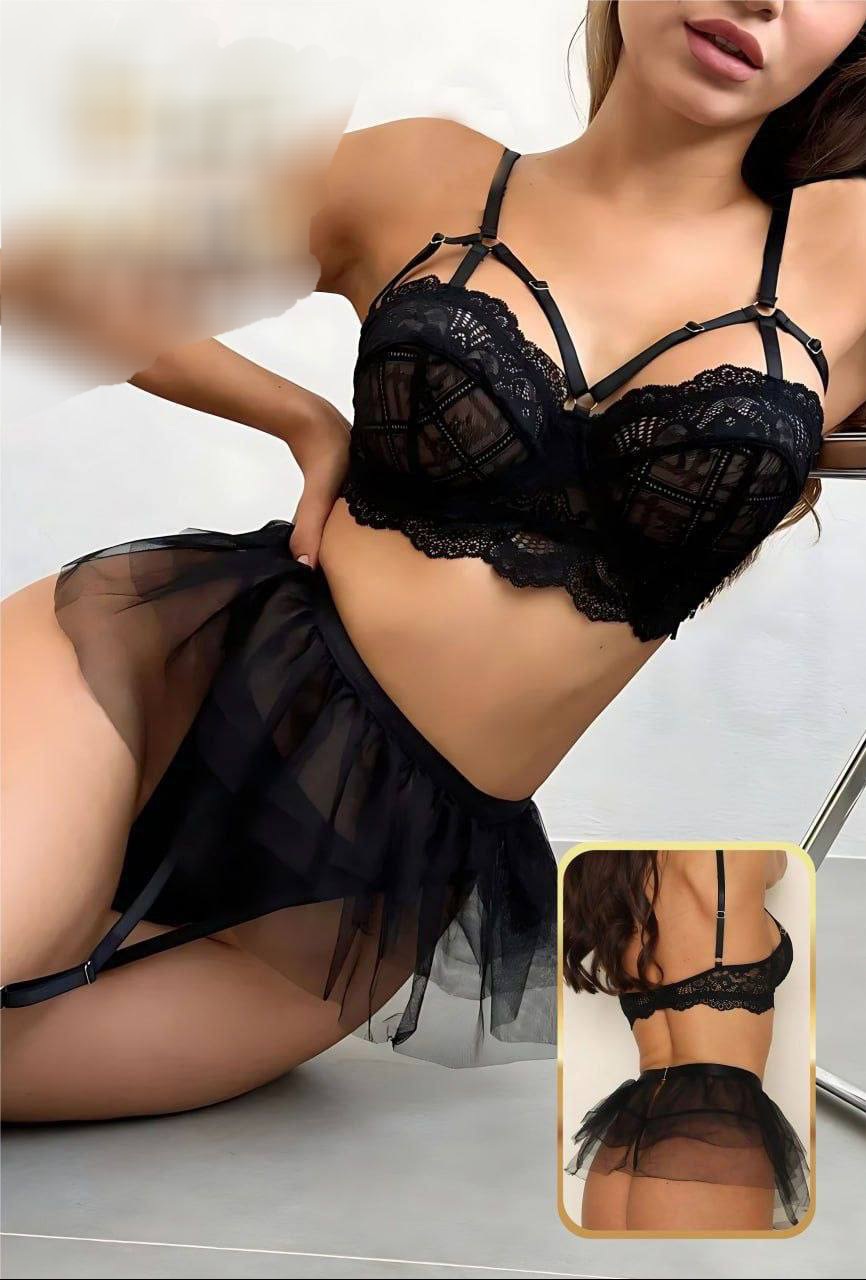 ست کامل: سوتین، شورت، دامن، تسمه دور پا