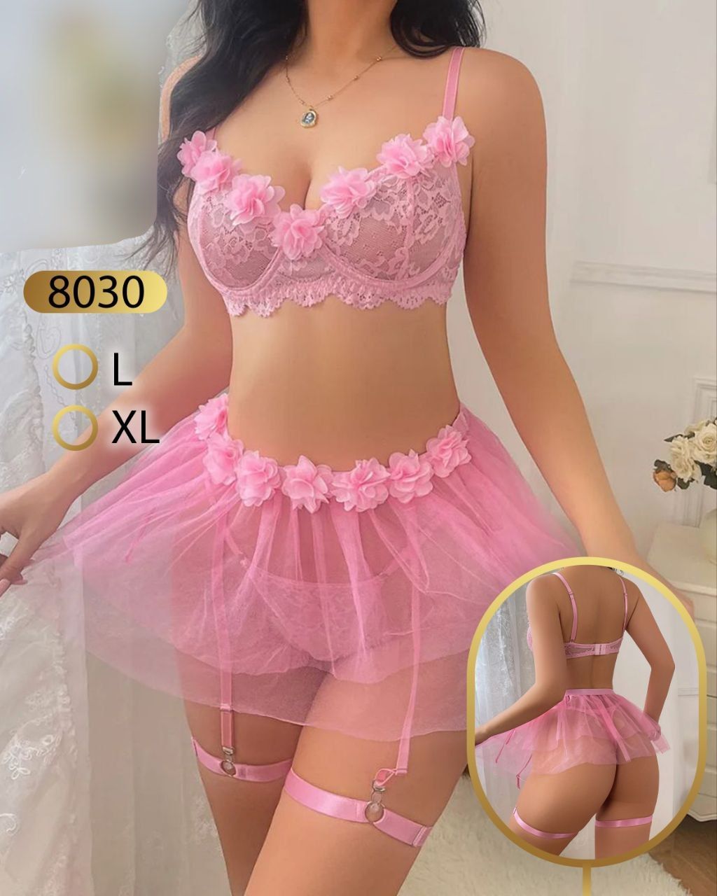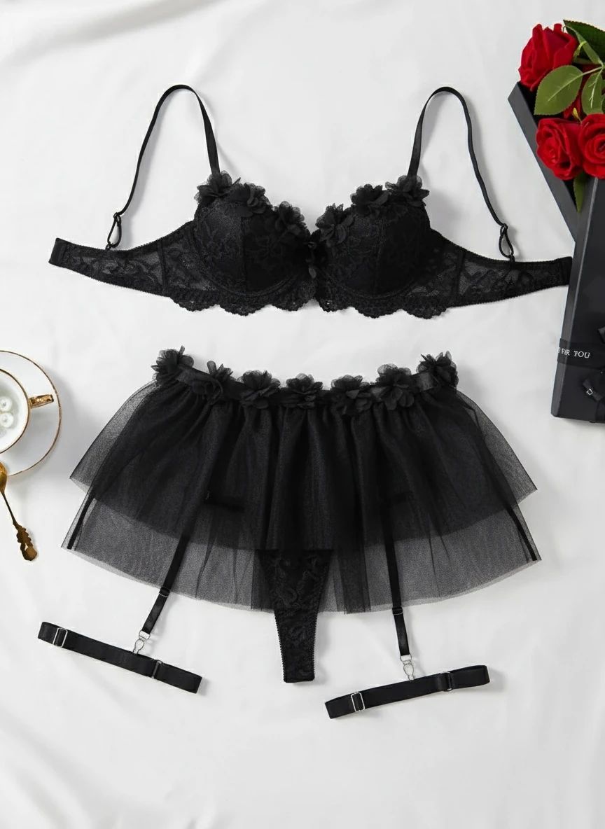 ست کامل: سوتین، شورت، بندجوراب دامنی، تسمه دور پا