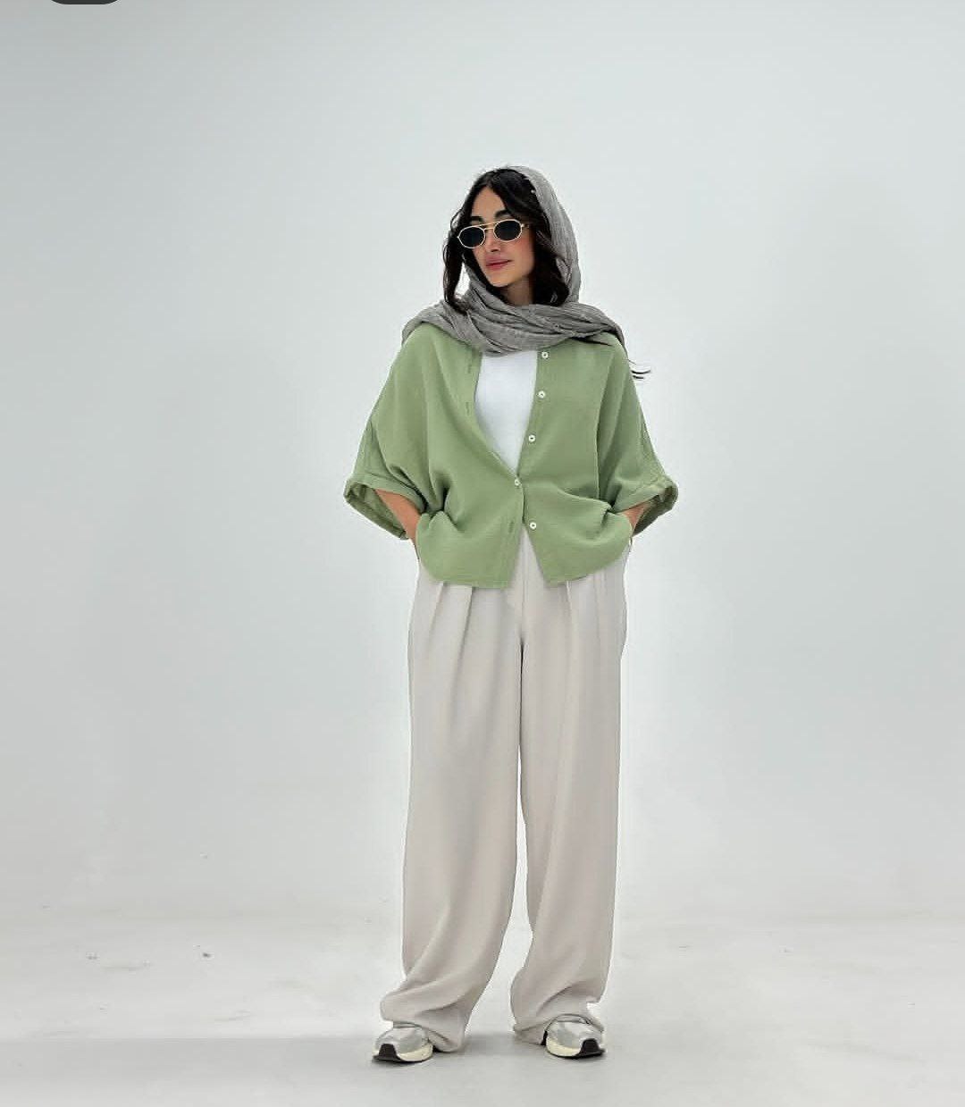 مدل آستین: سه ربع با سرآستین لبه برگشته نیمه کیمونویی